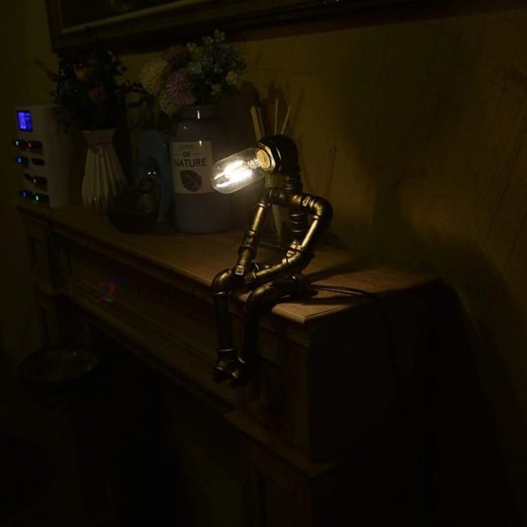 - Unique Design: Creative steampunk robot lamp made from metal pipes for a vintage industrial look.
