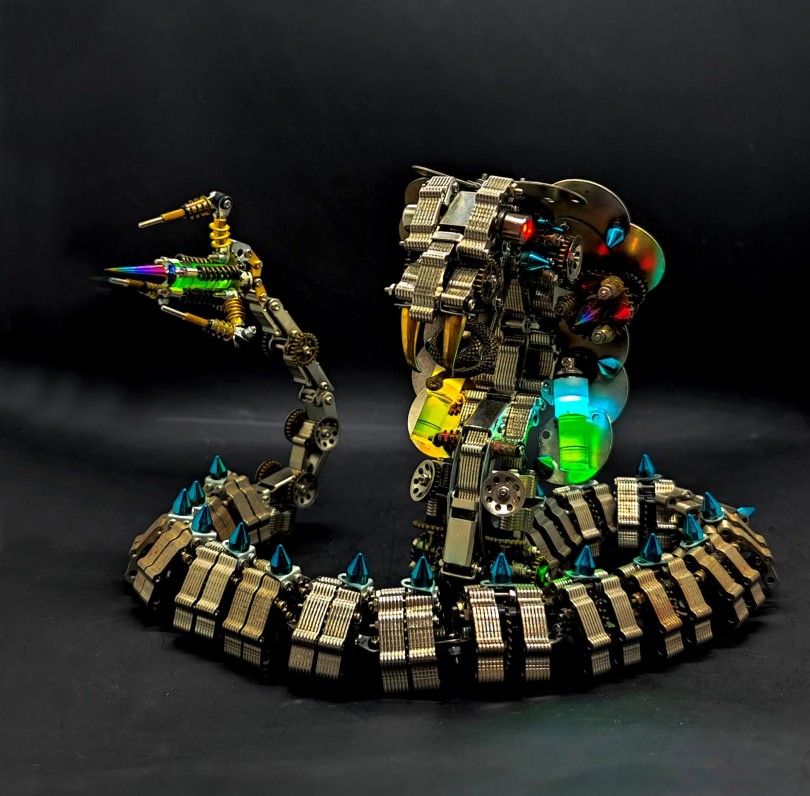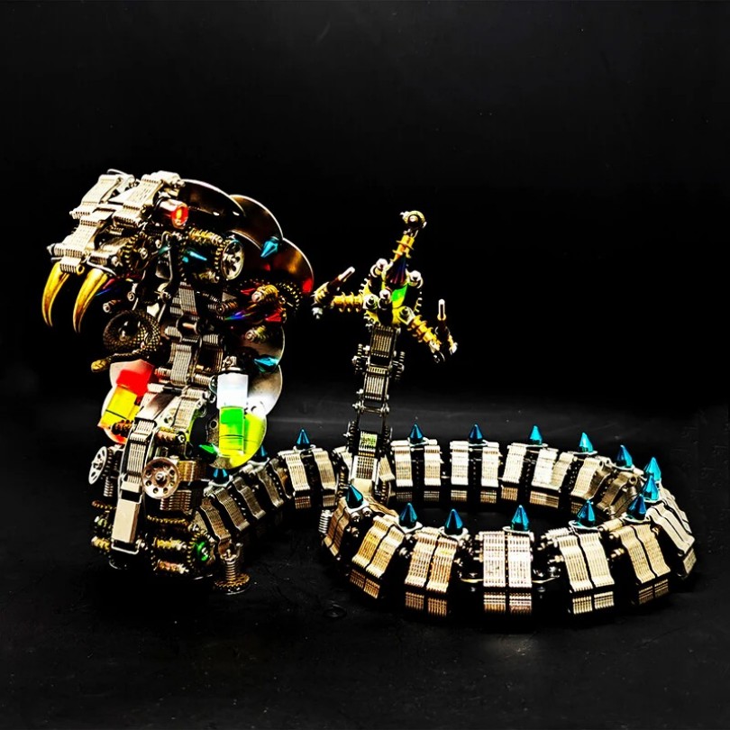 Unleash the power of engineering and art with the Mechanical King Cobra Model Kit – an awe-inspiring 1200-piece 3D metal puzzle that brings the legendary king cobra to life in stunning detail. Designed for adult model builders, hobbyists, and collectors, this mechanical puzzle kit combines high-tech cyberpunk aesthetics, precision engineering, and innovative LED lighting for a one-of-a-kind creation.
